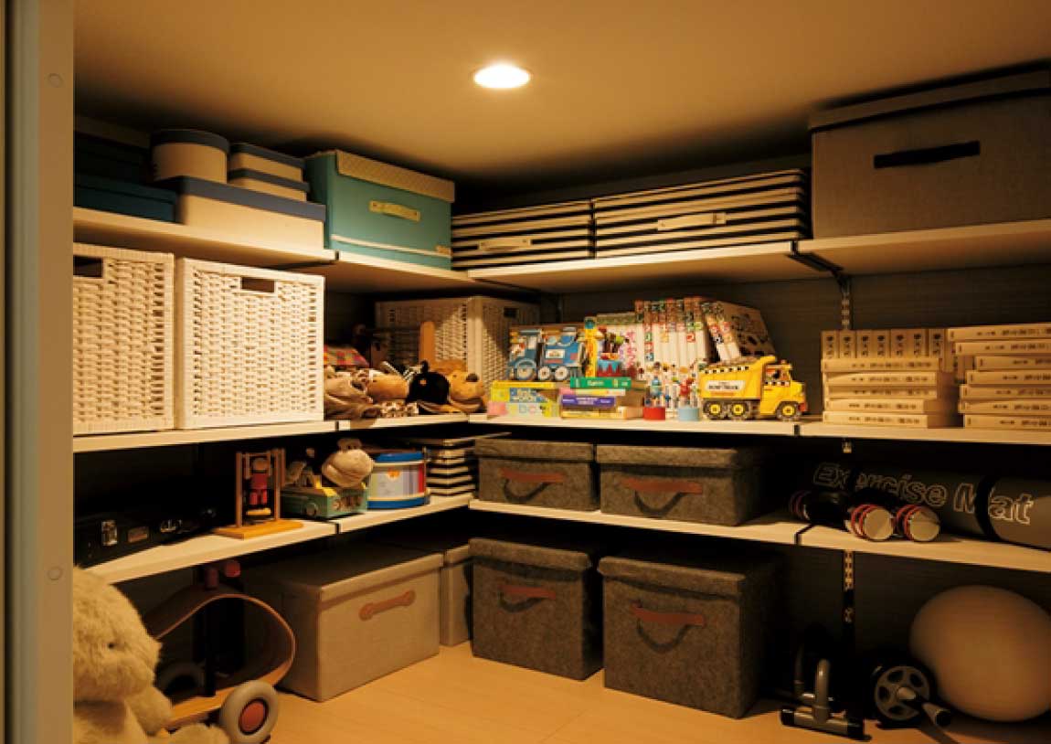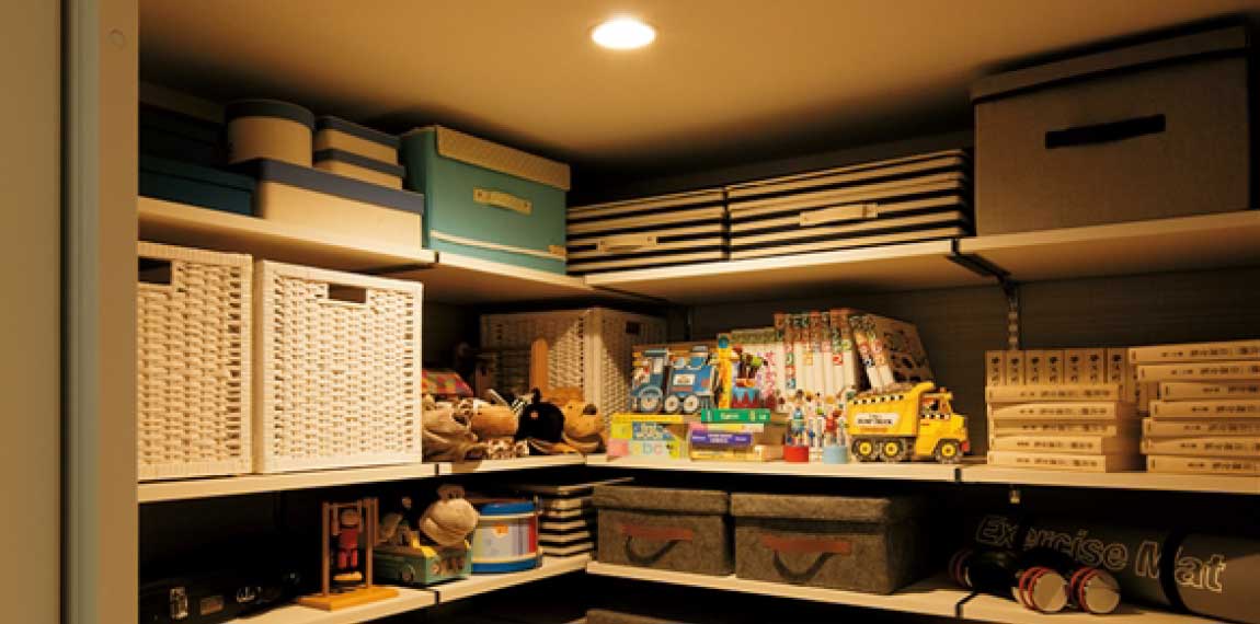 一戸建てなら収納も広々。家族の思い出も捨てることなく、一生の宝物としてしっかり保管できます。また、災害対策用の備蓄スペースも確保できるので、万一のときも安心です。